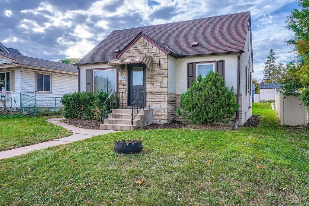 Beautifully maintained Southwest-themed 1.5-story home with exceptional updates and inviting spaces throughout. The main floor features a bright living room with picture window and cove ceiling, freshly painted throughout, and a kitchen with maple cabinets and newer appliances. A sunroom with southern exposure offers year-round light. The upper level provides two side-by-side bedrooms, while the newly remodeled lower level includes separate lighting for theater, game, and bar areas, plus a tiled bath with shower. Landscaped yard with annual plantings, mature bushes, and raspberry patch by garage. Home in a great Northeast location, close to parks, restaurants, breweries, and the Arts District. Just minutes to downtown, universities, and major highways.